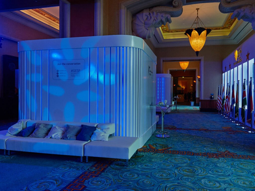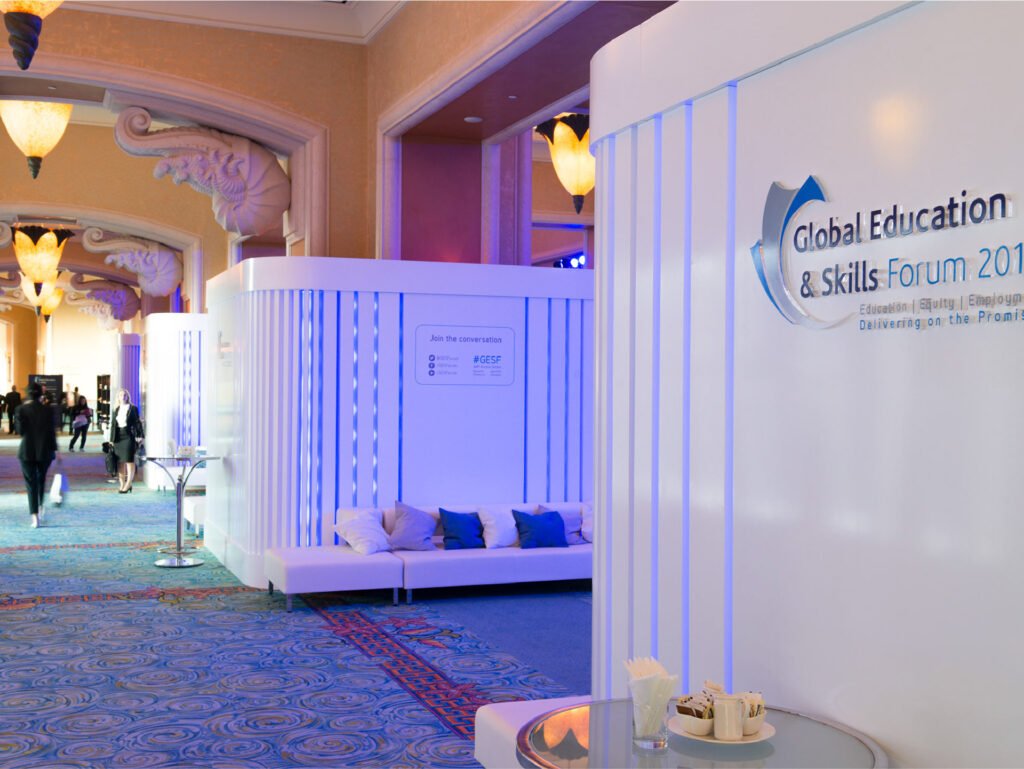2014 tavaszán a George & Burnell felkért minket a JW Marquis Marriott előterének berendezésére és felszerelésére az éves Globális Oktatási és Képzési Fórumhoz, az esemény arculatának megfelelően.