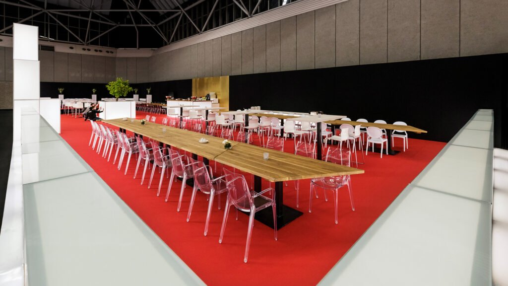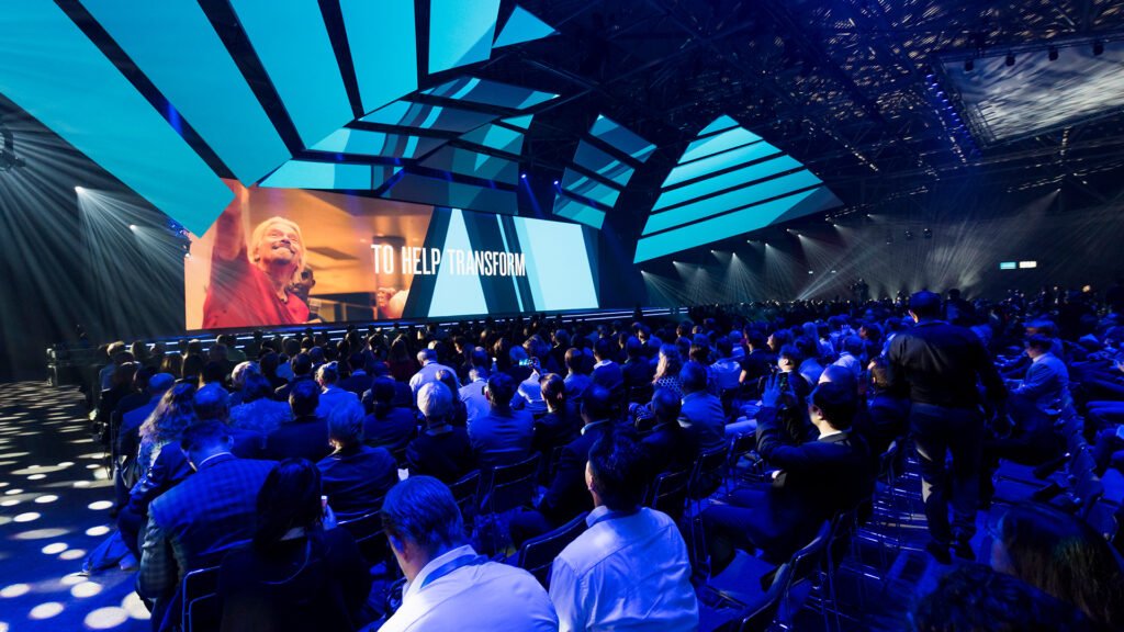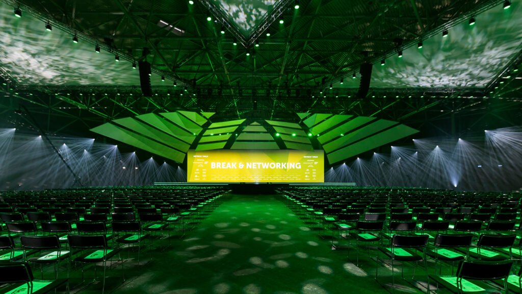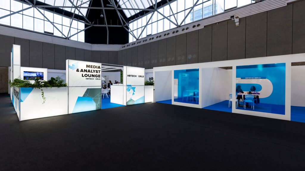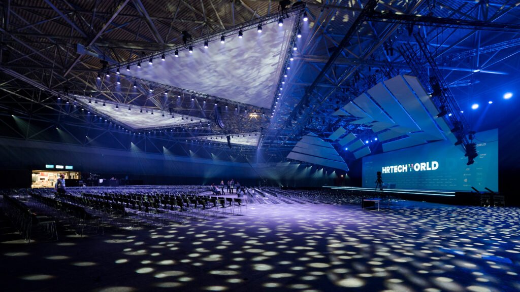 A 2017-ben megrendezésre kerülő HR Tech World Amszterdam konferencia főszínpadát és közösségi tereit terveztük meg. Ehhez az eseményhez elengedhetetlen volt egy monumentális és teátrális színpad létrehozása, amely a konferencia szimbólumává válhat, azonnal felismerhető a fotókon és videókon, és arra ösztönzi a résztvevőket, hogy osszák meg a közösségi médiában – ugyanakkor a színpadnak könnyen felépíthetőnek kellett lennie, és nem kellett elterelnie a figyelmet az előadókról a műsor alatt.
