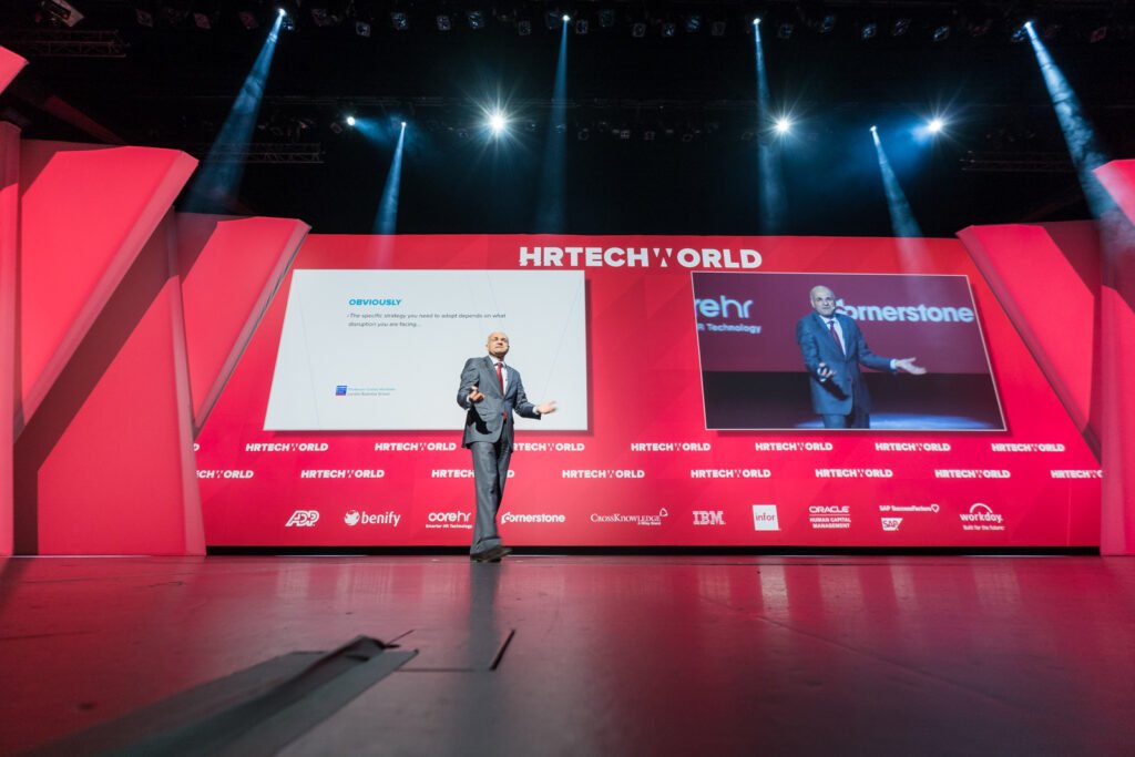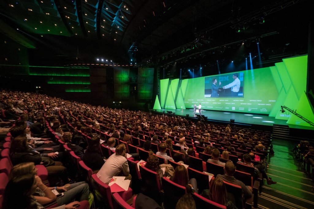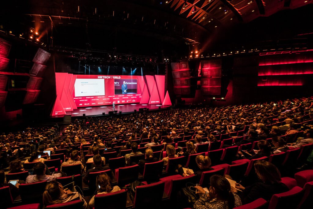 A 2017-es amszterdami projekt után 2018-ban is lehetőséget kaptunk, hogy a Párizsban megrendezésre kerülő HR Tech World konferencia főszínpadát megtervezzük. A projekt érdekessége az volt, hogy ugyanazzal az elemkészlettel dolgoztunk, amit egy évvel ezelőtt már felhasználtunk, így csökkentve a kivitelezési munka környezeti hatását.