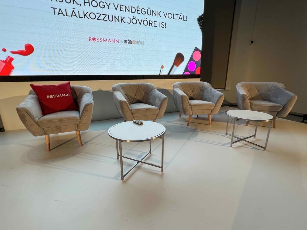 2023-ban a ROSSMANN X KRÉMMÁNIA BEAUTY EXPO a Millenárison került megrendezésre, ahol a teljes rendezvényberendezésért, installációkért és látványvilágért is csapatunk felelt. A projekt során a kiállítói egységek tervezését és kivitelezését az alaprajzi elrendezéshez igazítva végeztük, külön figyelmet fordítva a funkcionális használhatóságra. Emellett a közösségi és kényelmi terek – mint a lounge, büfé és vendégfogadó zóna – kialakításához is átfogó, a rendezvény arculatába illeszkedő megoldásokat biztosítottunk.