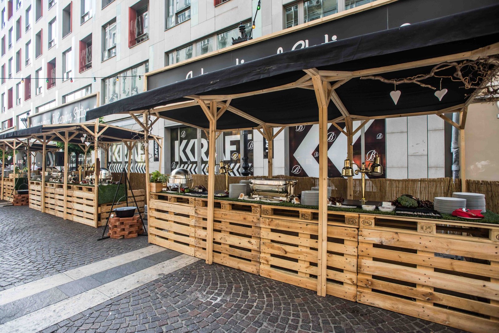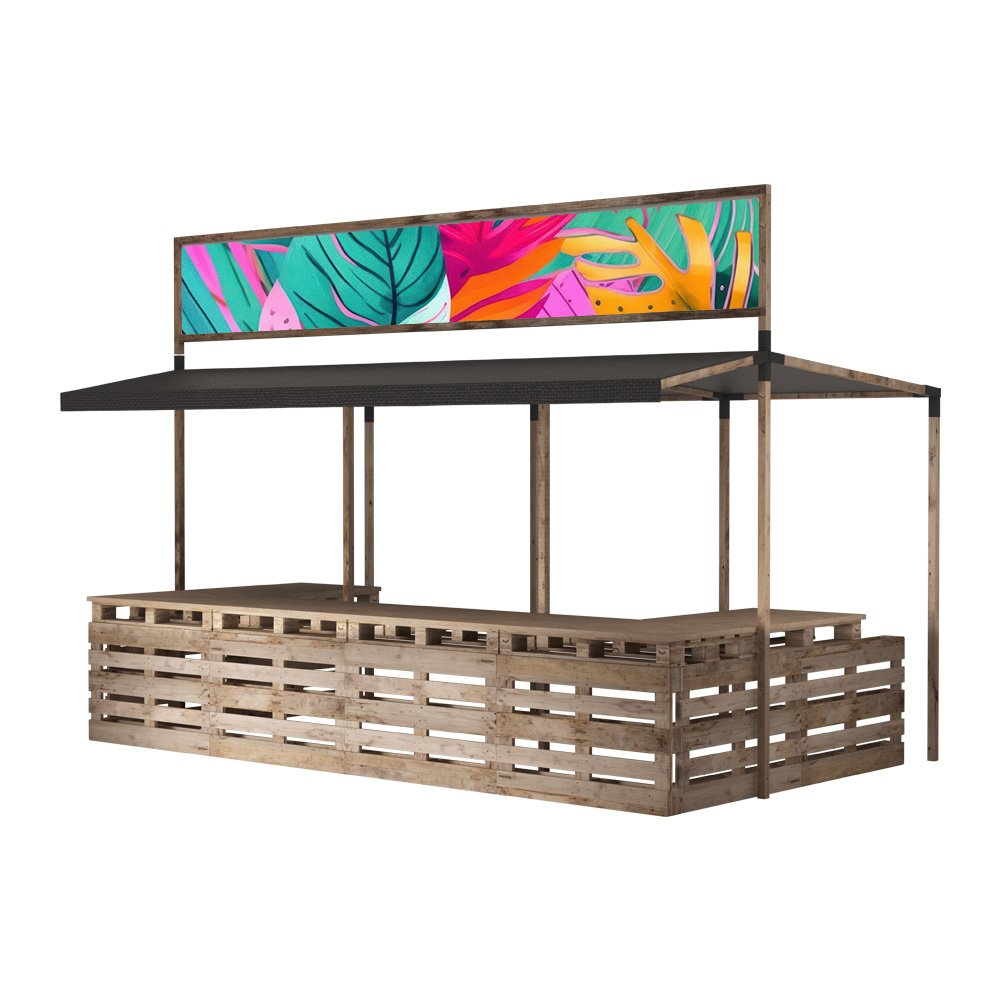 Kínálóstandunk visszaidézi a nagyvárosi piacok market hangulatát. A brandingelhető fríz egyedi megjelenést biztosít, a pult frontja pedig stencilfestéssel is díszíthető. Beltérre és kültérre ajánljuk.