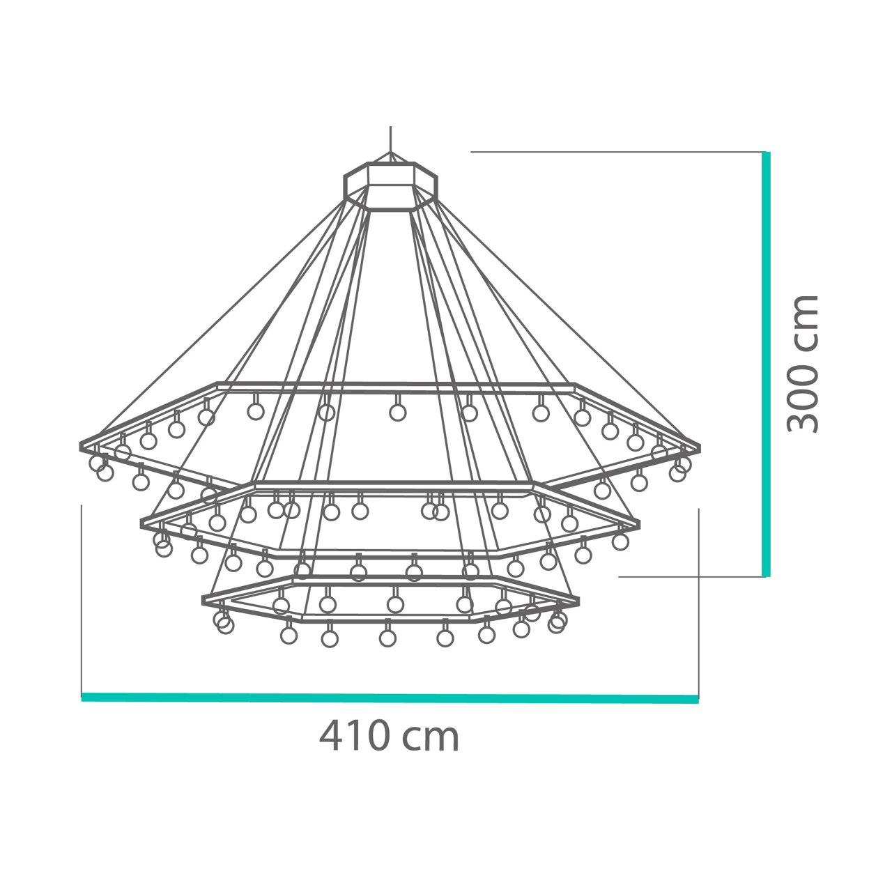 Az impozáns csillár, monumentális méretéből fakadóan összekapcsolja egymással a nagyobb tereket. Több méretben is elérhető. Beltérre ajánljuk.