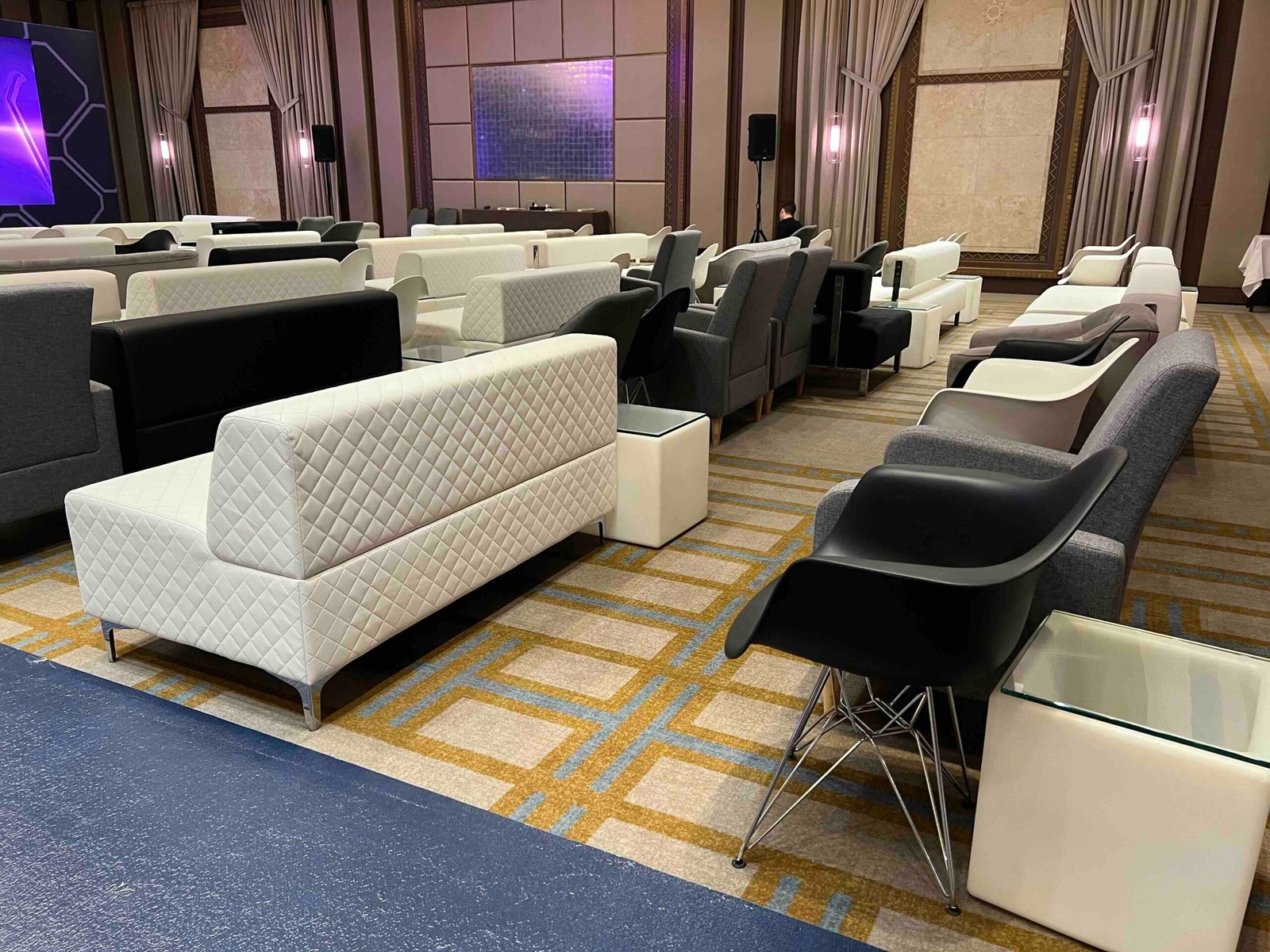 A legtöbb bútor a rendezvényre vagy magára az arculatra szabható. Ezt fóliázással, burkolatgyártással, huzatgyártással oldjuk meg. Arról, hogy melyik bútor és hogyan brandingelhető, érdeklődj munkatársainknál!