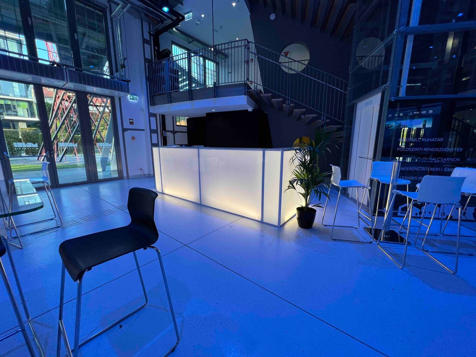 világító bárpult, üveg lappal