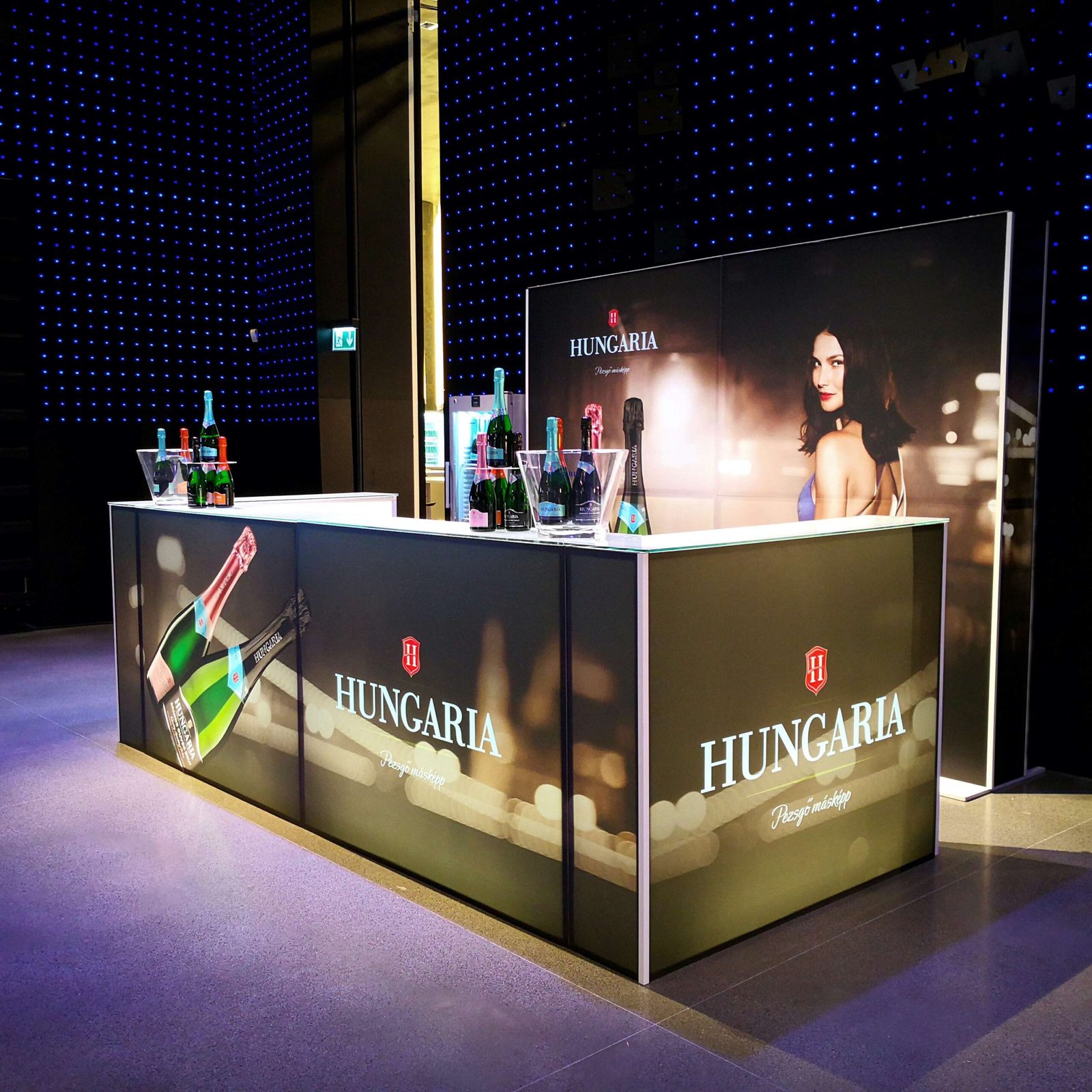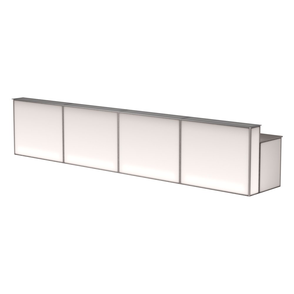 Világító bárpultunk üveg és tölgy lappal is elérhető. Látványosan brandingelhető 4C print fólianyomással, a tejfehér plexi egyedi kérés esetén, többféle színfóliával fényelhető. Lehetőség van egy standard méretű, 80 cm magas hűtő beépítésére. Többféle méretben elérhető. Beltérre ajánljuk.